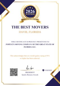 When you hire Popeye’s Moving Company, you’re not just getting typical house movers in Florida. You’re getting full, personalized service. Contact us today.